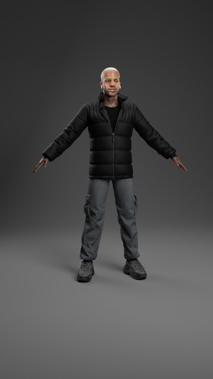 Creating a digital avatar of DJ artist ConductaUK, including designing a Stone Island jacket as a digital garment. The project also involves animating and simulating both the outfit and the avatar for a realistic digital representation