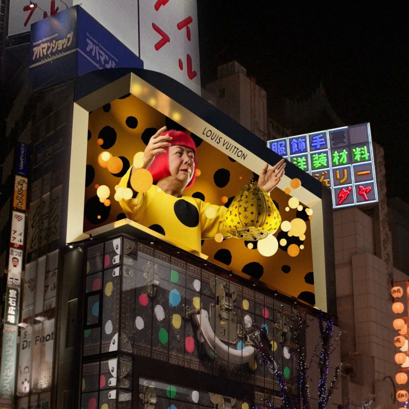 In celebration of the Louis Vuitton x Yayoi Kusama collaboration, iconic locations in New York, Chengdu, London, and Hangzhou are transformed with hyper-realistic 3D anamorphic imagery
