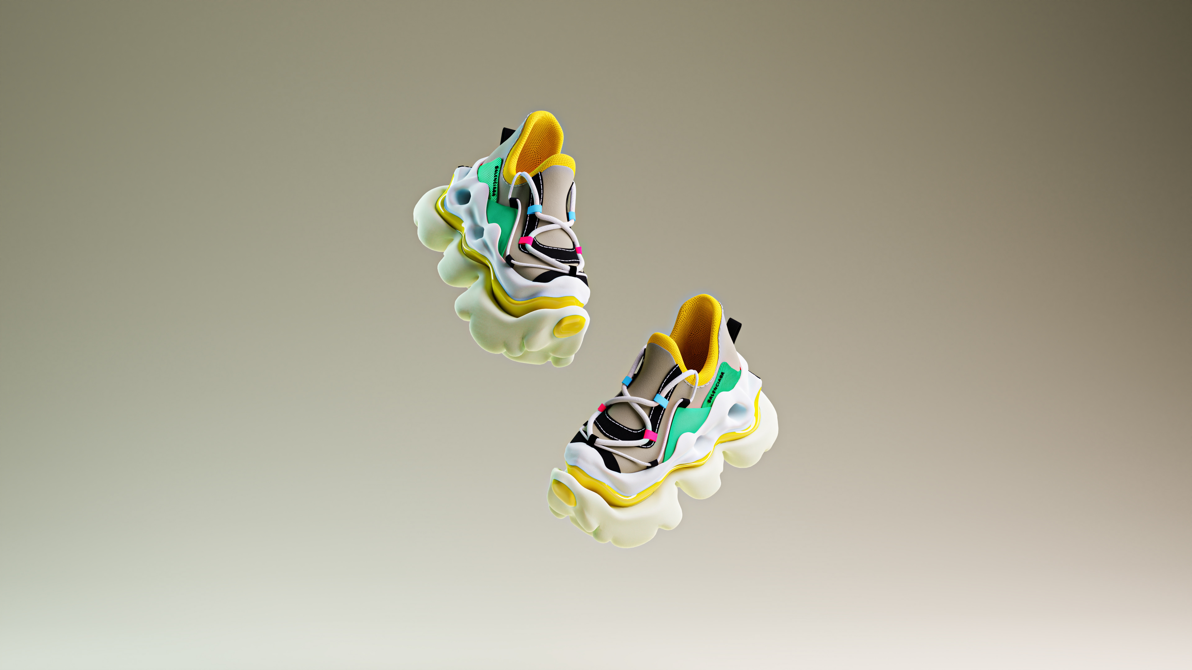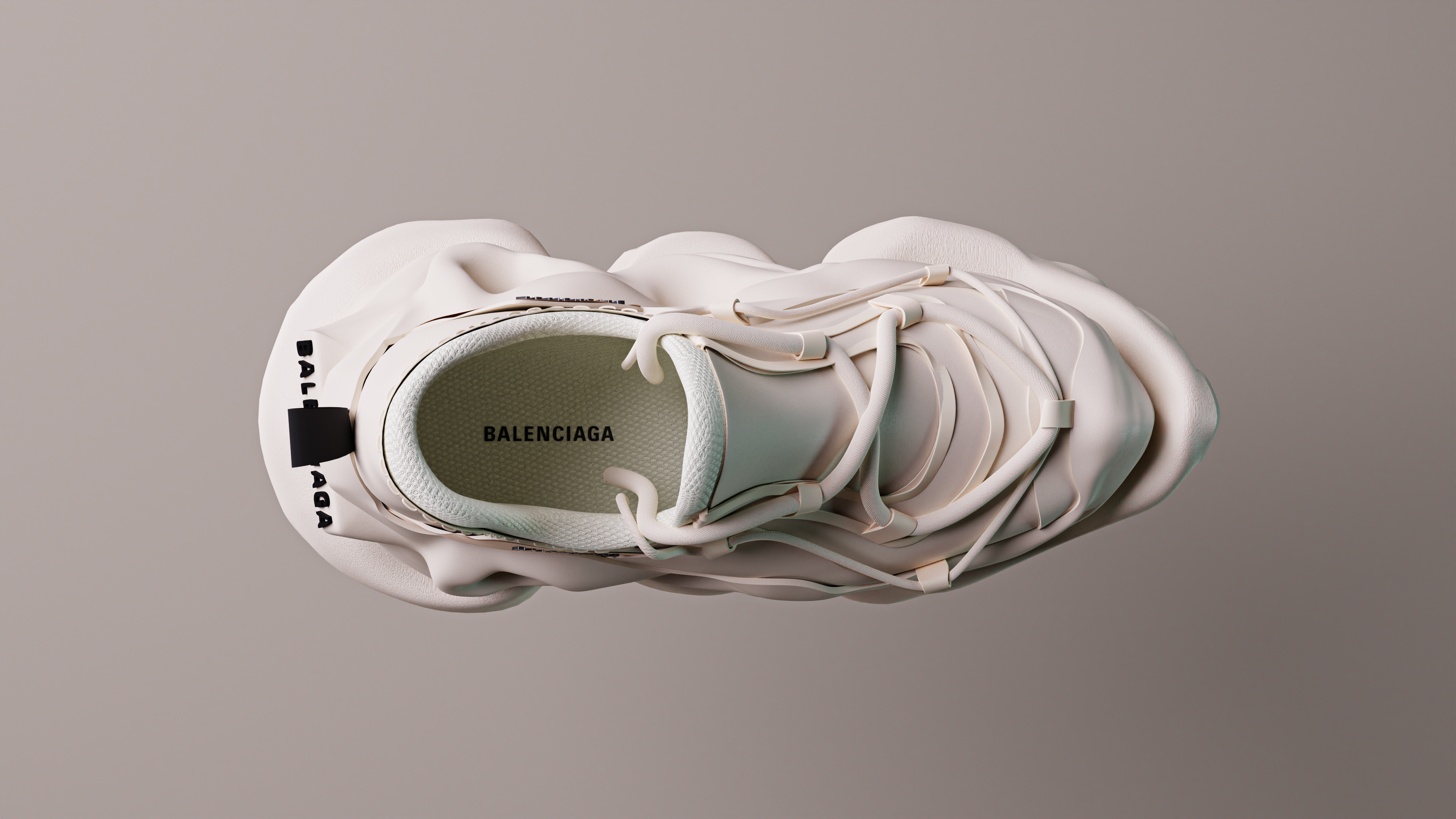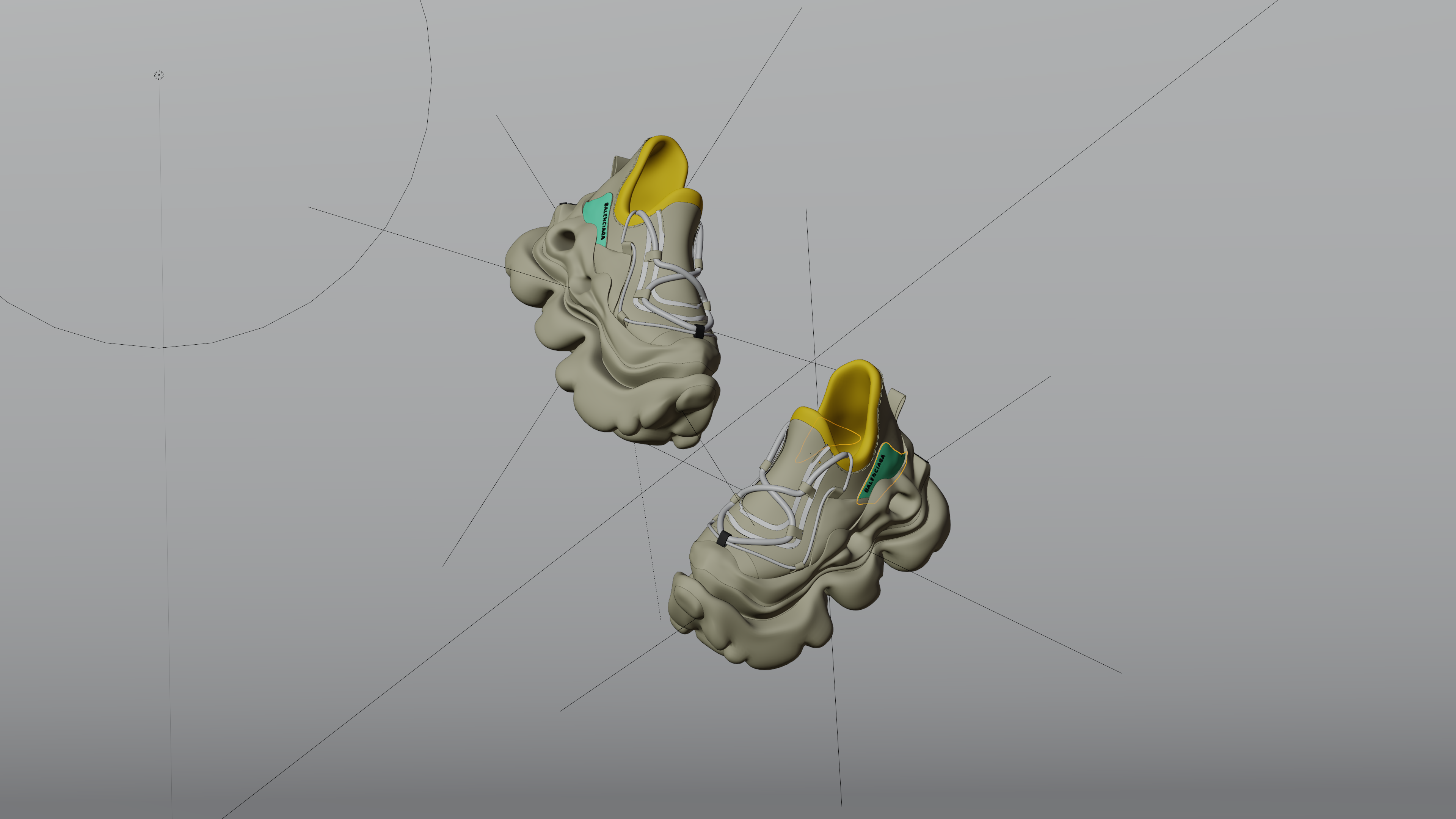 The Balenciaga Cloudform was created in Gravity Sketch VR by starting with a rough shoe form, focusing on proportions and structure. Freeform subdivision modeling was used to shape the exaggerated, organic sole, achieving a fluid, cloud-like aesthetic. Dynamic stroke control and surface manipulation refined the details, creating smooth, inflated textures that mimic soft, sculptural formations. The VR environment enabled intuitive spatial adjustments, allowing for precise real-time modifications to the shoe’s curvature and volume